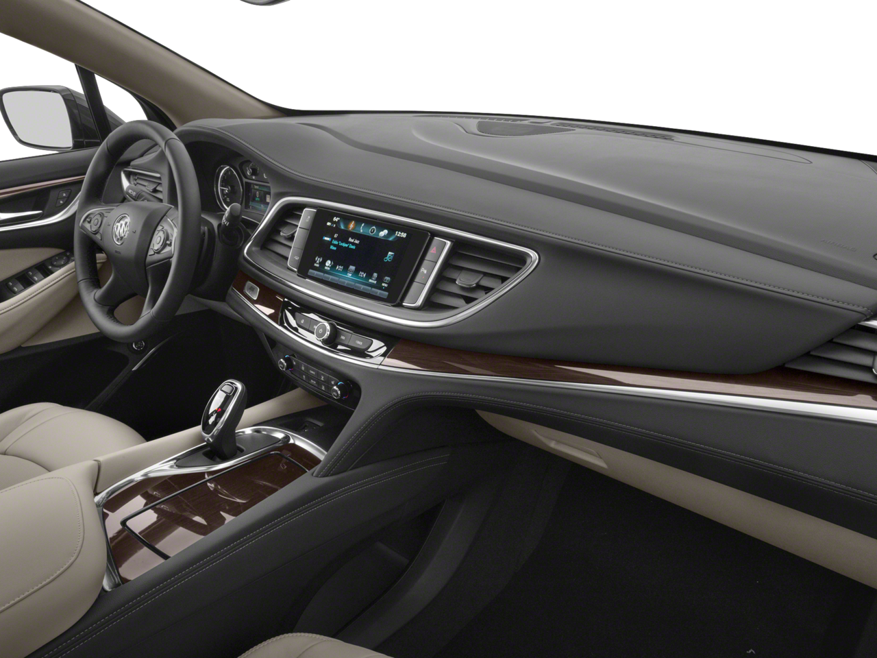 - Avenir Package Premium Package content plus: unique upper and lower grilles, wheels and front door badging; unique Chestnut/Ebony interior color including seat stitching and piping; Avenir embroidered head rests and floor mats; bold script sill plates all four doors; premium film decor accents; wood steering wheel; Buick Infotainment with Navigation; wireless charging; power dual moonroof; 8" reconfigurable driver information center; Surround Vision with full display inside rearview mirror and 5 exterior colors [White Frost Tricoat, Satin Steel Metallic, Pepperdust, Dark Slate Metallic and Ebony Twilight Metallic]