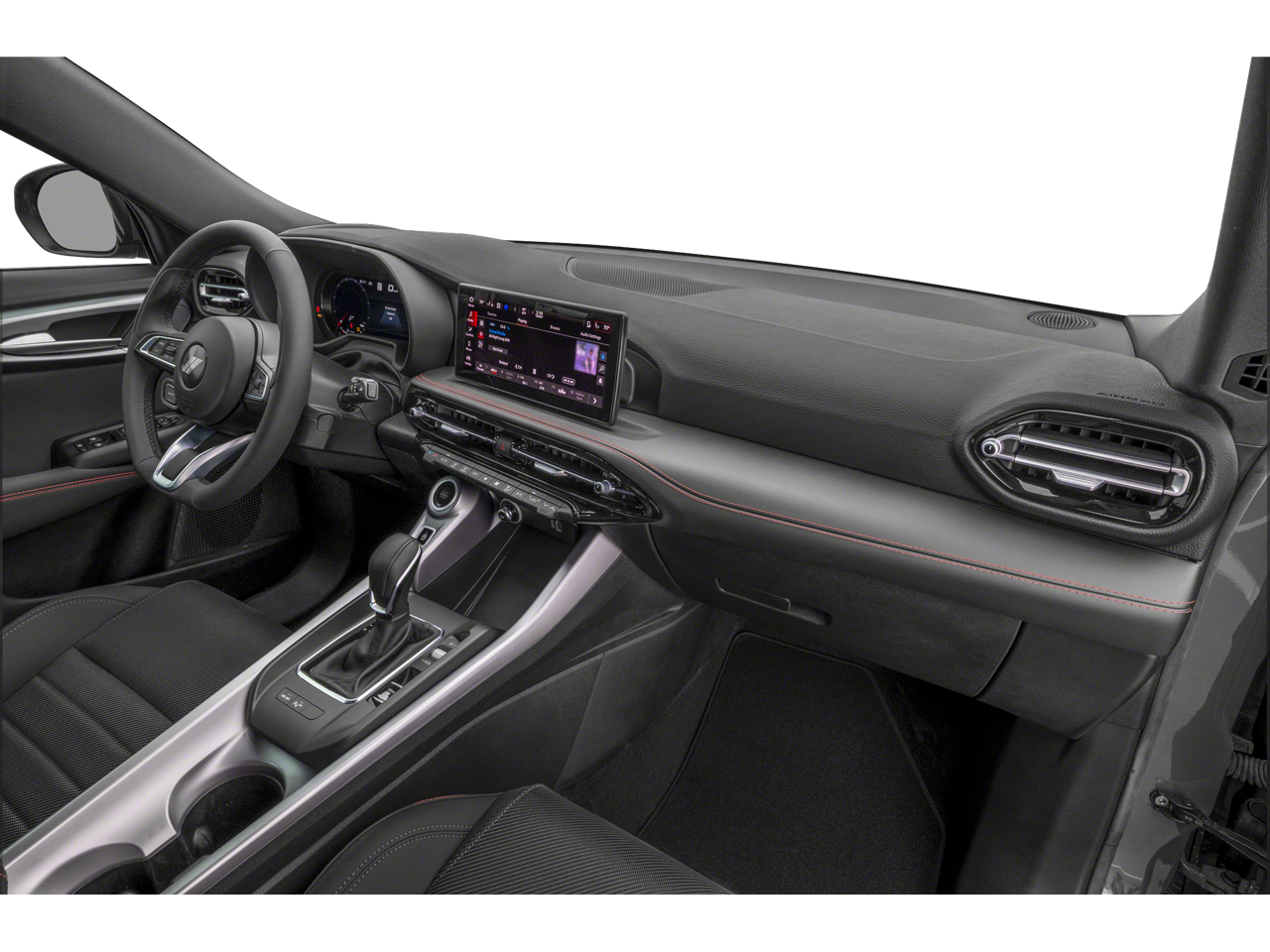 Step into a sleek cabin with **Black Cloth/Leatherette Seats**, **manual 6-way driver/passenger seats**, and room for five with **27 cu.ft. cargo space**. Stay connected with **Uconnect 5** on a **10.25-inch touchscreen**, **6 speakers**, **Apple CarPlay/Android Auto**, **Google Android Auto**, **SiriusXM**, and **steering wheel audio controls**. Loaded with the **GT Blacktop Package** and **Quick Order Package 23N GT**, enjoy **blind spot detection**, **forward collision warning-plus**, **lane keeping assist**, **rear cross path detection**, **ParkSense rear parking sensors**, **ParkView backup camera**, **brake assist**, **electronic stability control**, **fully automatic LED headlights**, **rain-sensing wipers**, **power heated folding mirrors** with turn signals, **dual-zone A/C**, **deep tinted glass**, and **lip spoiler**. The aggressive exterior turns heads with **18-inch x 7.5-inch Abyss finish aluminum wheels**, **225/55R18 Goodyear all-season tires**, **gloss black day light opening/mirror caps**, **dark GT/Hornet badges**, **black grille**, and **body-colored bumpers**ideal for **urban drivers**, **tech lovers**, or **style seekers**.